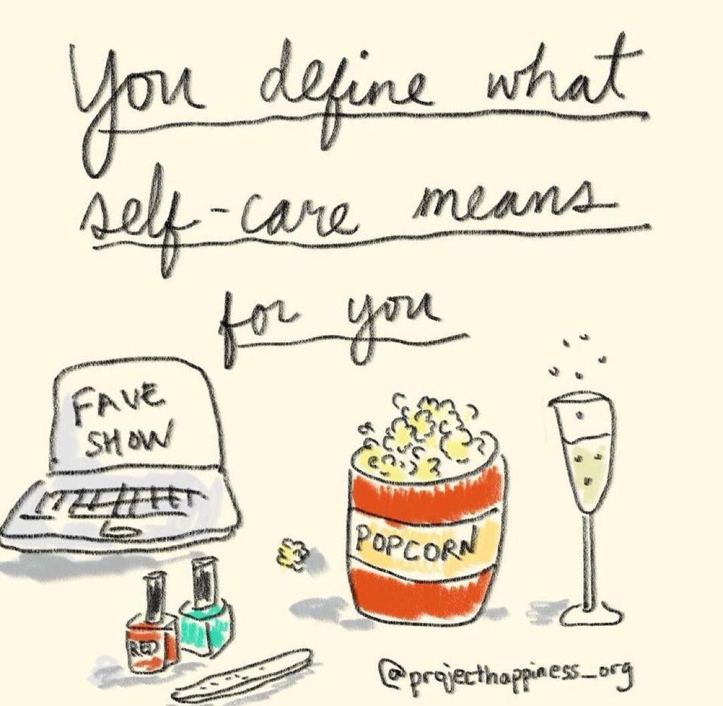 "Sometimes self-care is exercising and eating right. Sometimes it's spending time with loved ones and taking a nap. And sometimes it's watching an entire season on TV in one weekend while you lounge around in your pajamas. Whatever soothes your soul." –Nanea Hoffman Self-care is how you define it. Martha Beck, author of The Joy Diet, suggests that we treatbourselves twice a day to anything that makes us smile spontaneously. "When you give yourself a treat," Martha explains, "the objective is to see the well-meaning, useful animal side of your being, tossing yourself small rewards in order to train your beastly self to do things it might not otherwise attempt… A real feast is any activity that gives you true nourishment: love, learning, any expression of your thoughts or talents, the act of bringing your mind home to the physical anchor of your body." Besides food, treat yourself to other delight, a movie, a book, wherever makes you feel good.